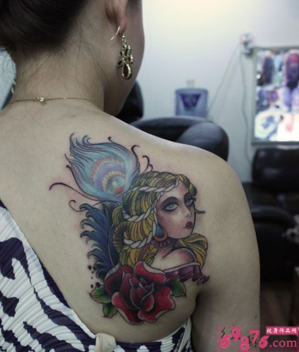 女生肩花纹身_15张女性双肩对称的肩花纹身图案作品图片