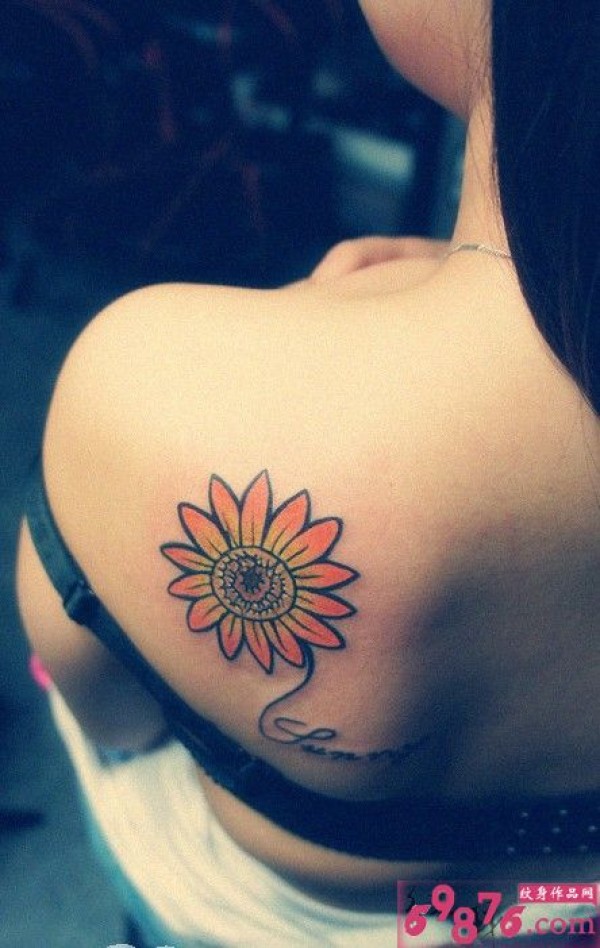 草图感向日葵纹身图案_植物纹身图案大全_纹身图吧