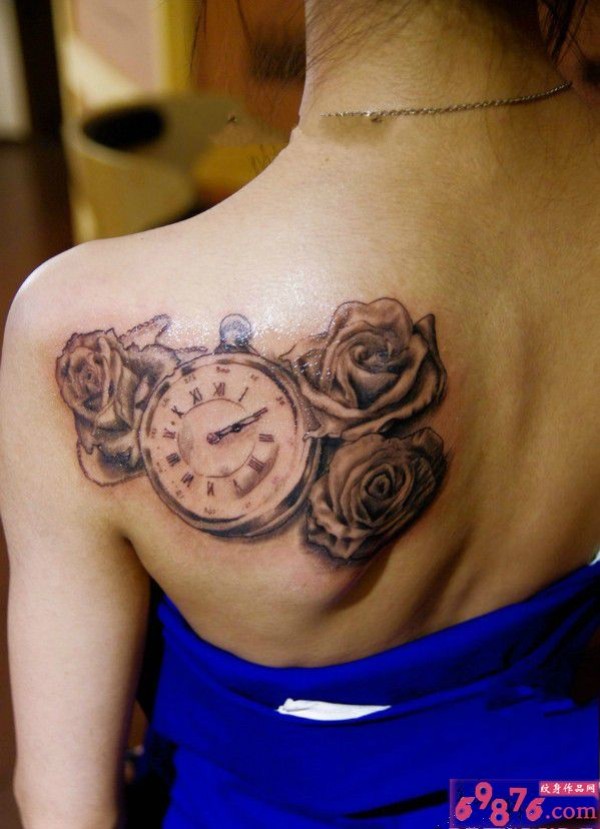 女生肩花纹身_15张女性双肩对称的肩花纹身图案作品图片