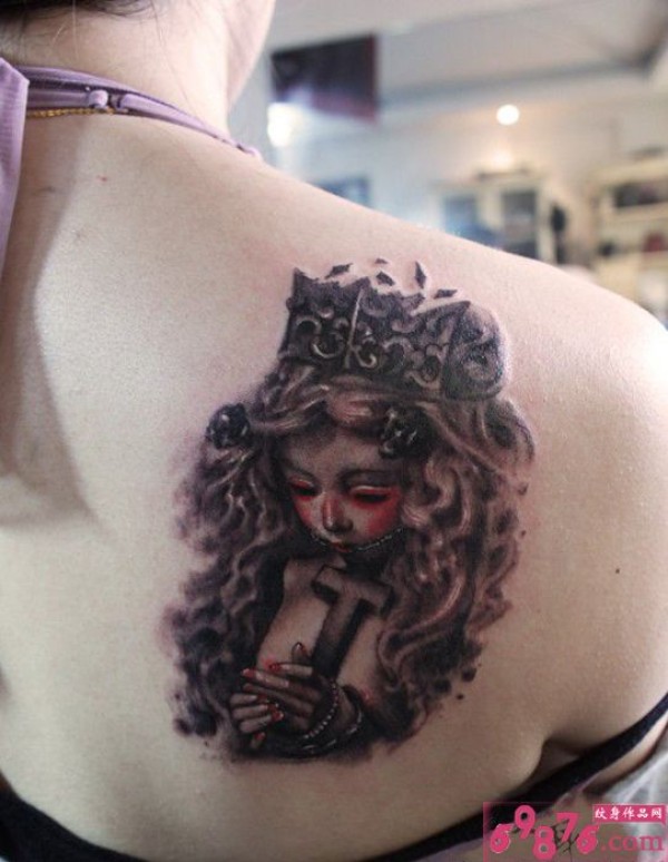 哥特娃娃十字架后肩纹身图片