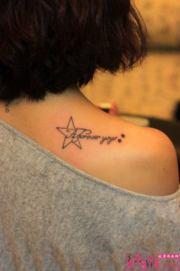 女孩肩上星星英文清新纹身图图片