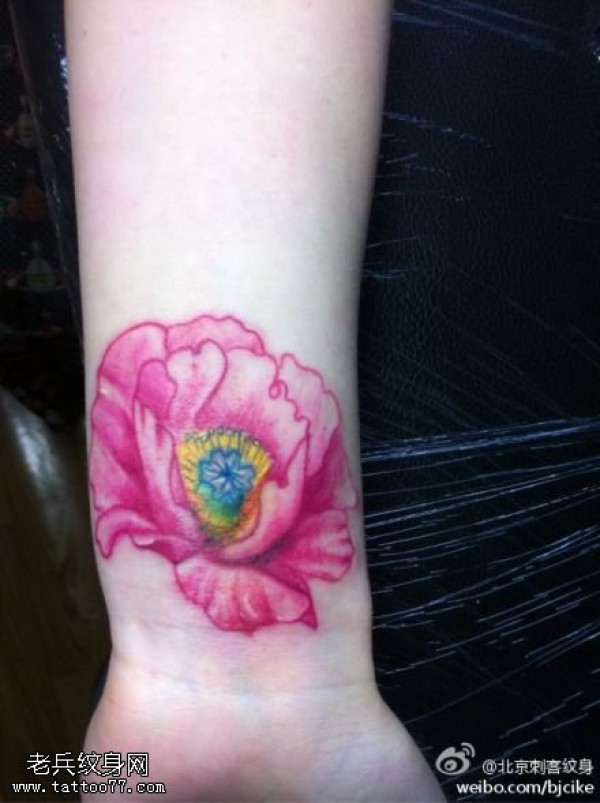 手部个性盛开莲花纹身图片_植物纹身图案大全_纹身图吧