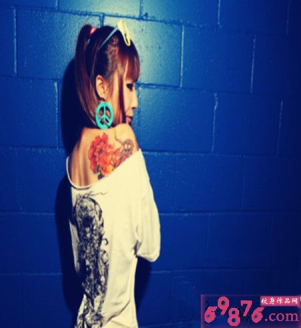 时尚美女肩部玫瑰花纹身图片