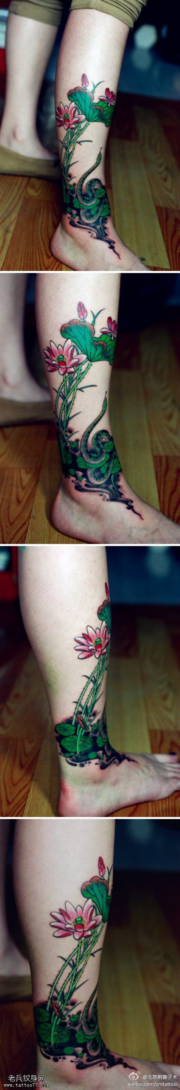清新花朵腿部纹身图案图片_植物纹身图案大全_纹身图吧