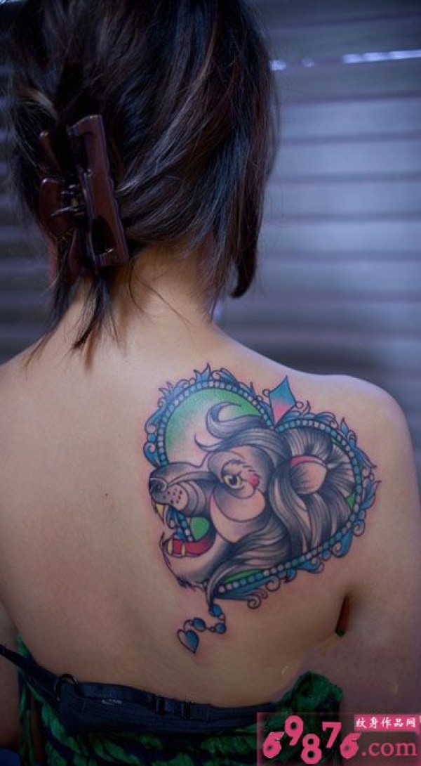 狮子座心创意肩部纹身图片