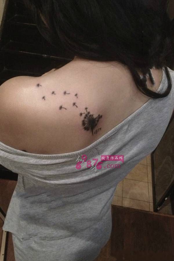 后肩唯美花藤英文图案图片_植物纹身图案大全_纹身图吧
