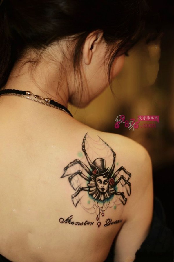 女生肩花纹身_15张女性双肩对称的肩花纹身图案作品图片