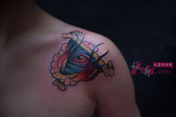 创意三角眼肩部纹身图片