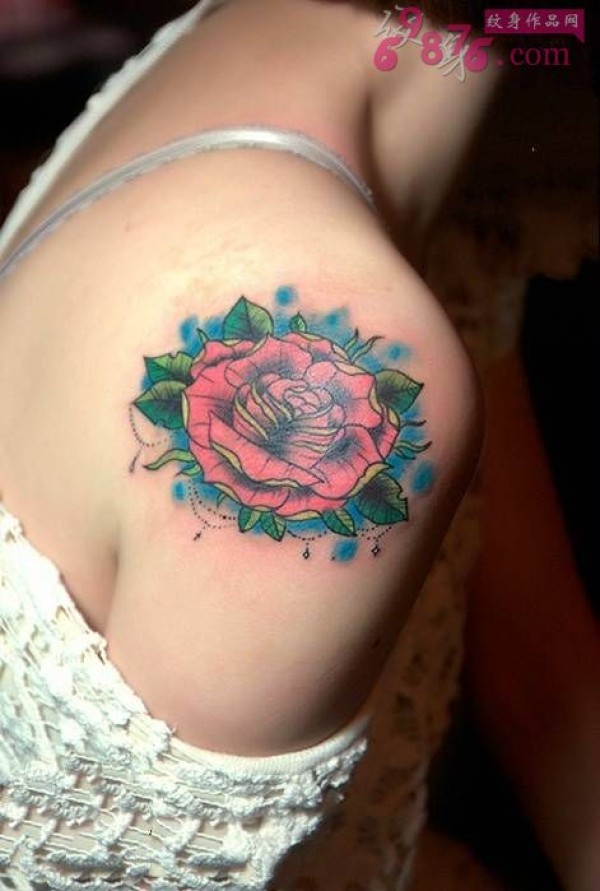 女生肩花纹身_15张女性双肩对称的肩花纹身图案作品图片