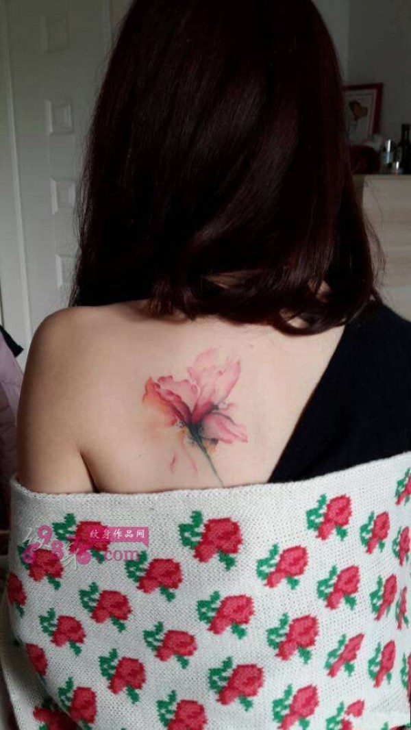 女生肩花纹身_15张女性双肩对称的肩花纹身图案作品图片