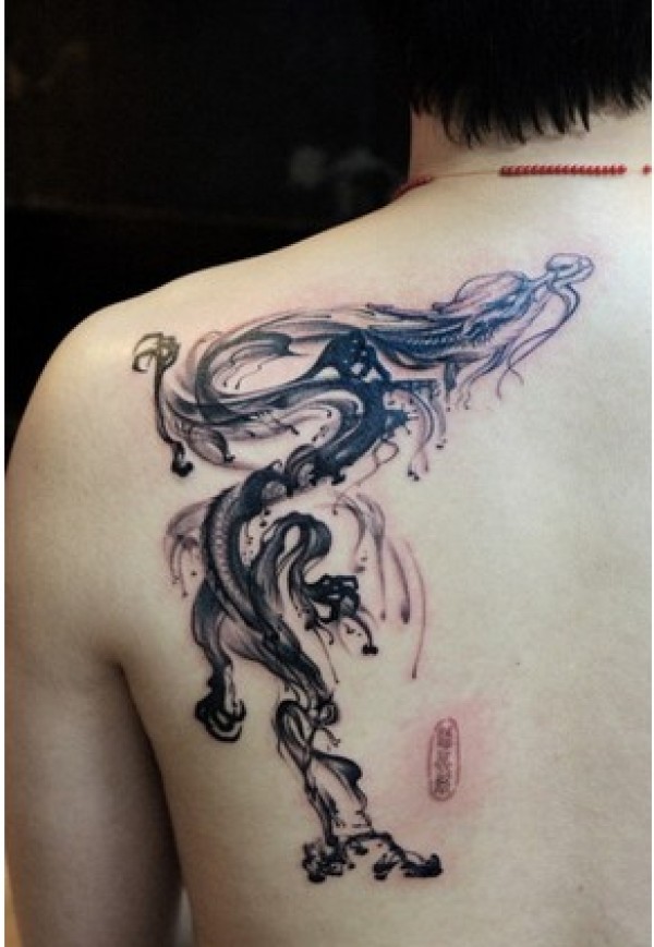 帅哥肩部时尚经典的水墨画龙纹身图案