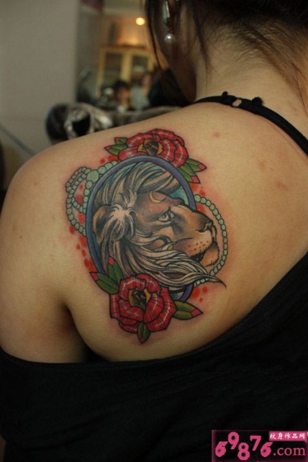 女生肩花纹身_15张女性双肩对称的肩花纹身图案作品图片