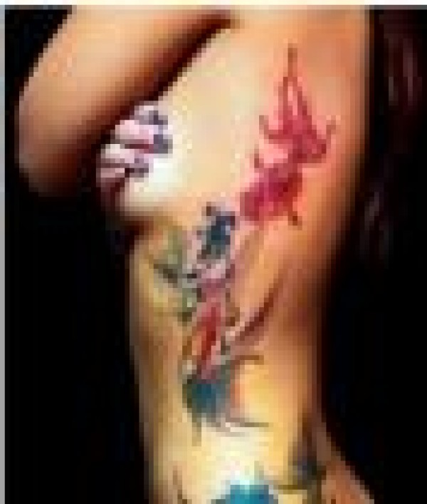 分享一款腰部时尚性感的蝶恋花纹身图案_腰部纹身图案大全_纹身图吧