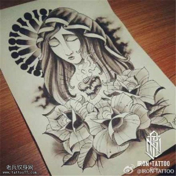 圣母玛利亚玫瑰花纹身图片