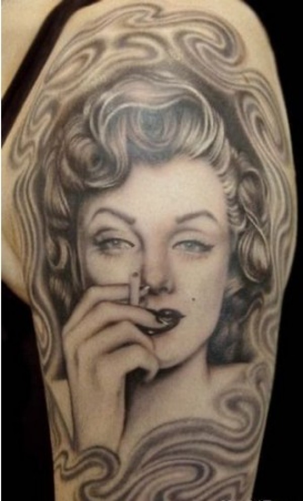 壮汉帅哥肩部欧美抽烟的女性纹身图图片