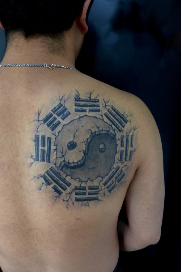 传统八卦图肩部纹身图片