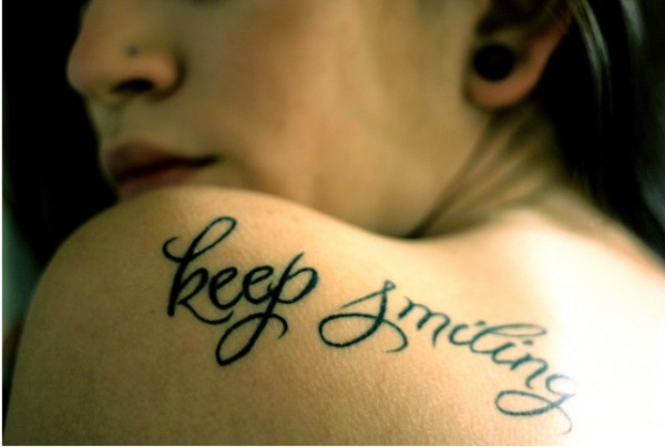 国外女孩后肩部漂亮的英文字母纹身图图片