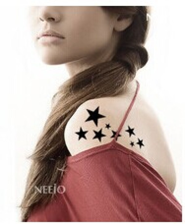 女生肩部温馨五角星星纹身 显出柔美图片