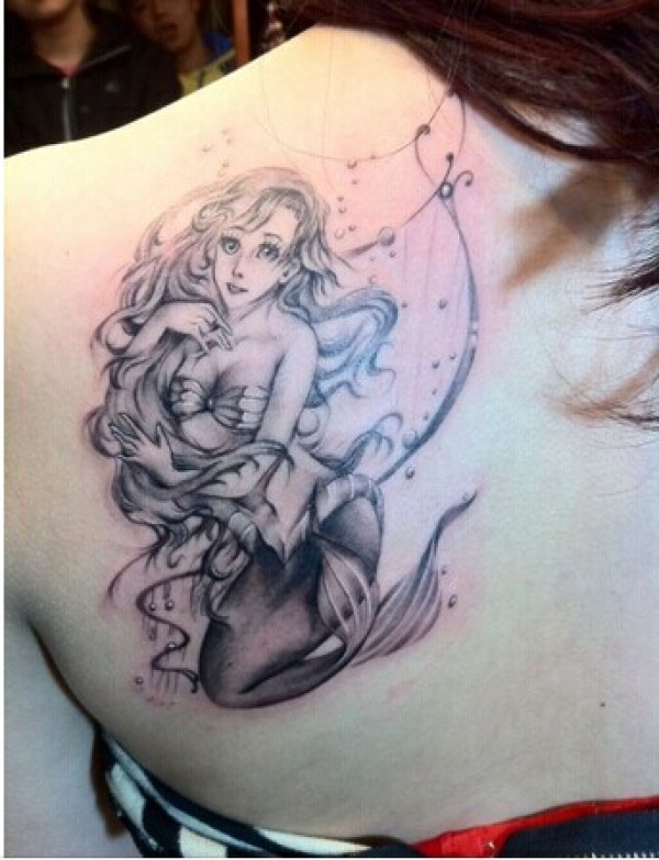 漂亮MM肩部唯美好看的美人鱼纹身图图片