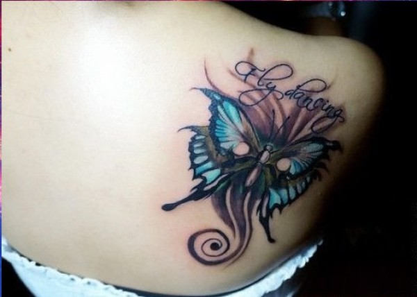 性感MM肩膀彩绘花蝴蝶纹身图案