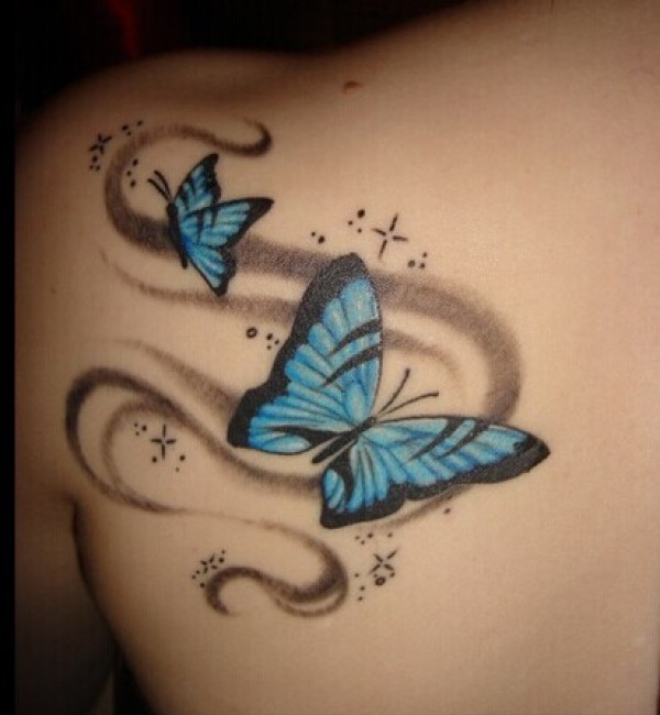 女生肩花纹身_15张女性双肩对称的肩花纹身图案作品图片