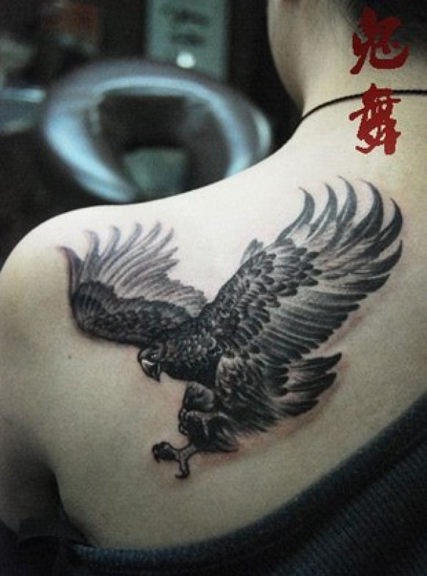 女孩子肩背超酷的老鹰纹身