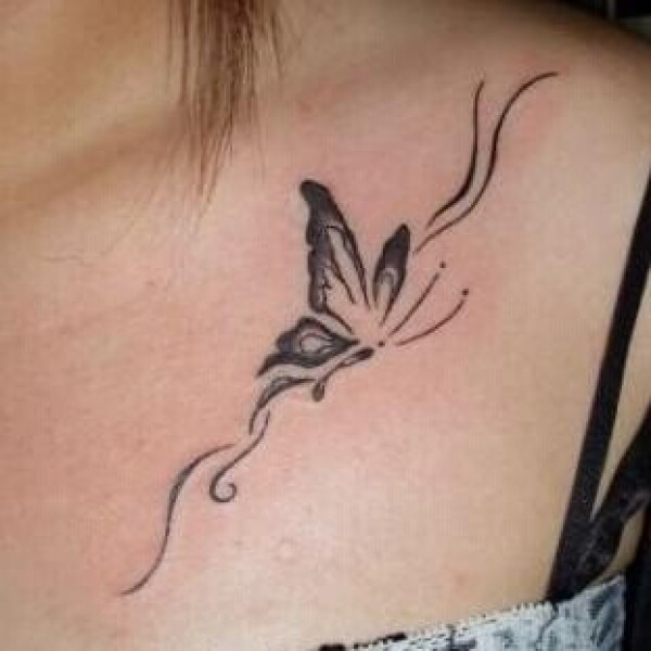 女生肩部高清唯美简单蝴蝶纹身图图片