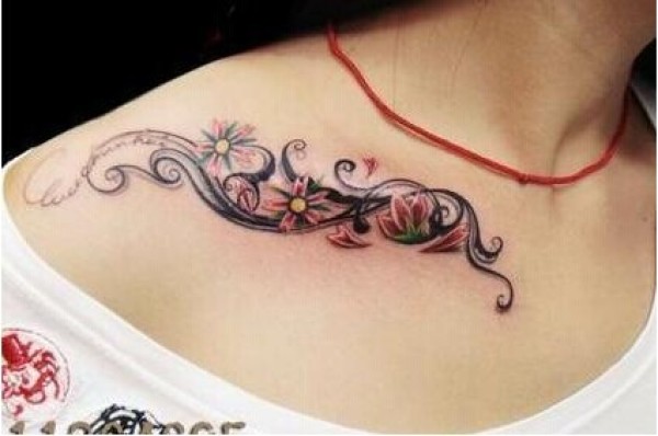 清纯女生肩部性感唯美高清花藤图纹身图片