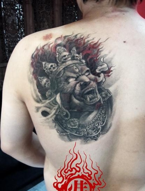 后肩背超酷霸气的一张马头明王纹身图片