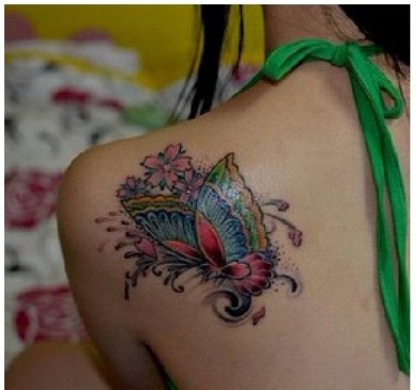 女生肩花纹身_15张女性双肩对称的肩花纹身图案作品图片