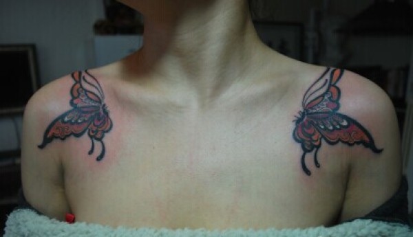 美女双肩膀处时尚唯美的蝴蝶纹身图片