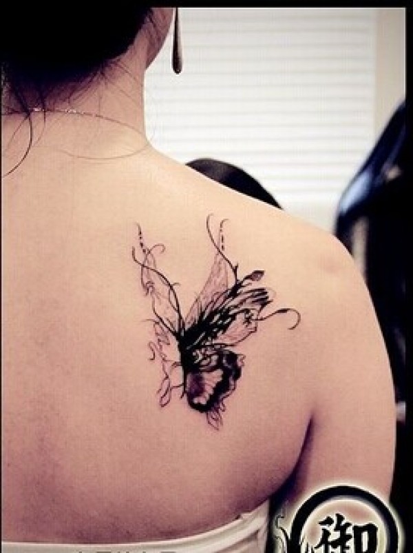 美女肩部时尚唯美漂亮蝴蝶纹身图片