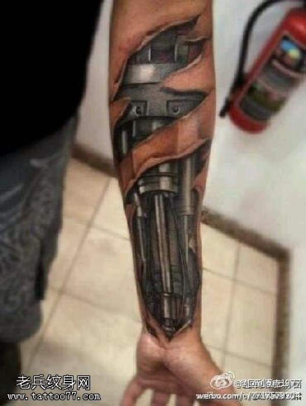 霸气逼真机械手纹身图案