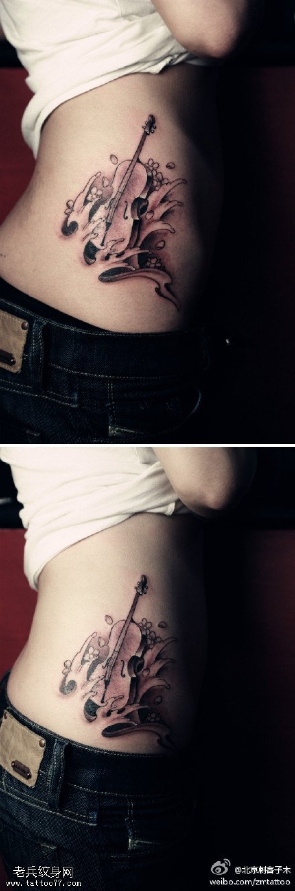 分享一款腰部时尚性感的蝶恋花纹身图案_腰部纹身图案大全_纹身图吧