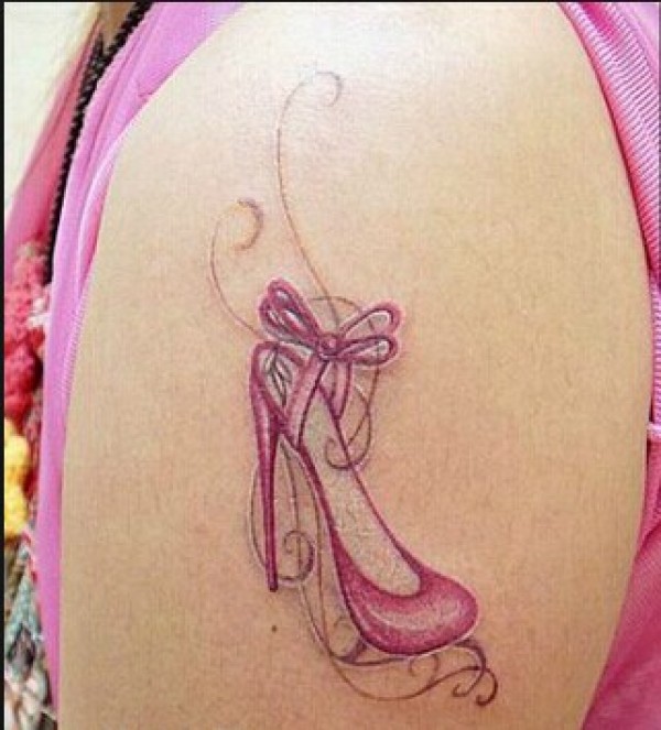 女生肩部唯美好看的女生高跟鞋纹身图片