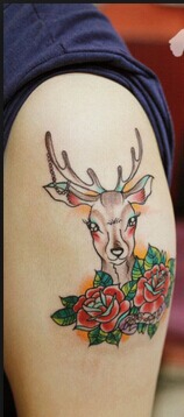 分享一款男生肩部唯美潮流的小鹿纹身图片