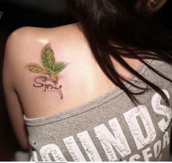 后肩唯美花藤英文图案图片_植物纹身图案大全_纹身图吧