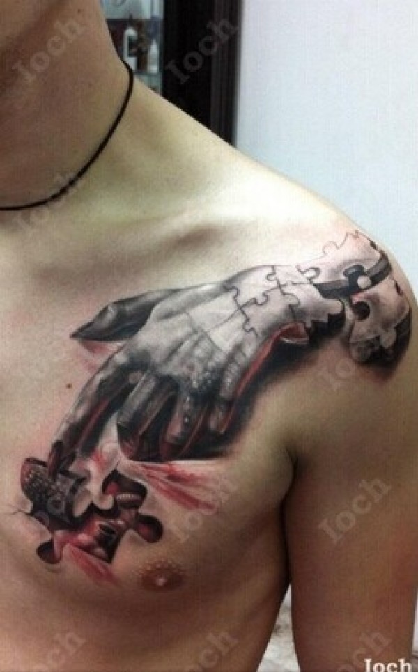 男生肩部经典机械手纹身图图片