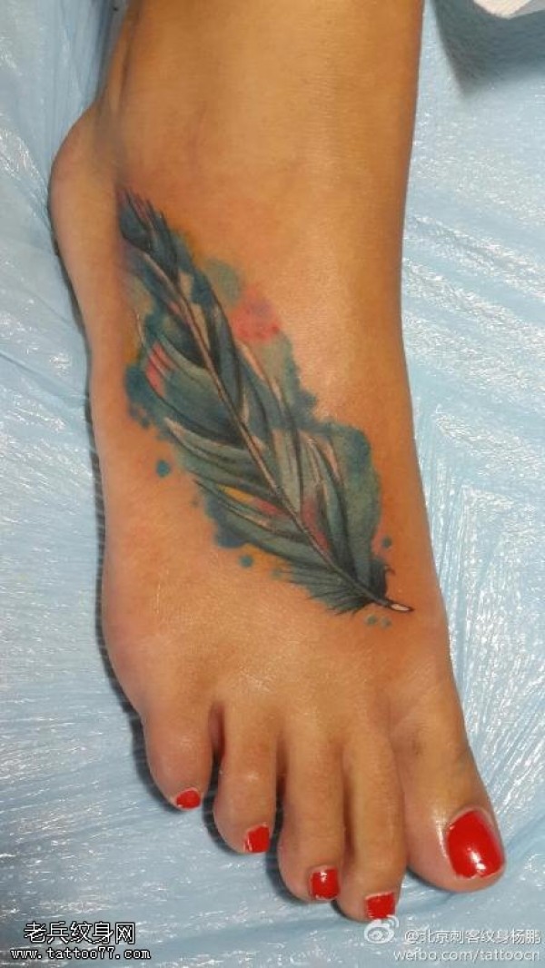 脚踝羽毛文身作品
