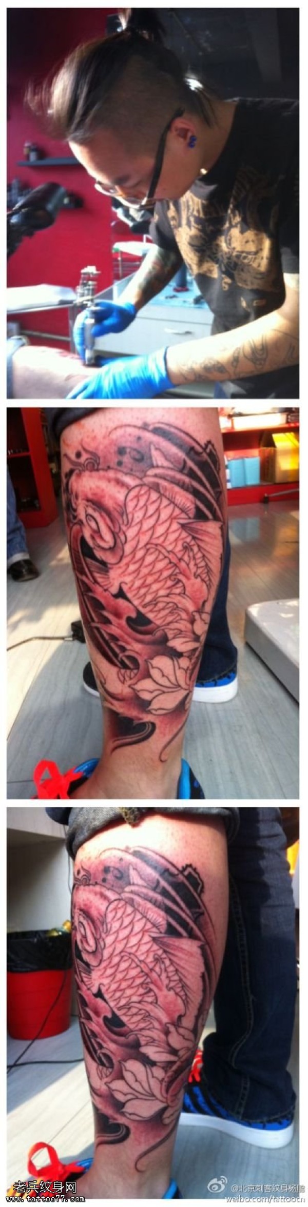 传统鲤鱼花小腿纹身_腿部纹身图案大全_纹身图吧