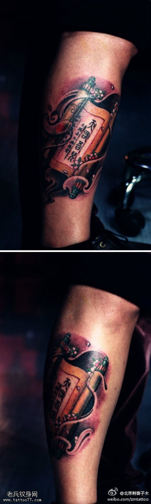 花腿纹身--一组大黑腿纹身图案作品欣赏