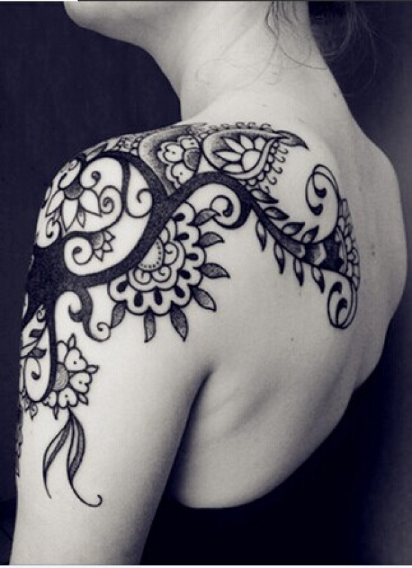 美女肩部漂亮唯美的花藤图腾纹身图片