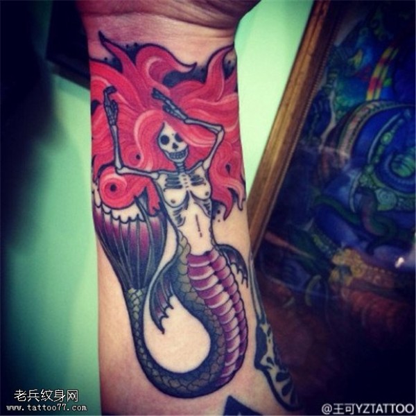 手腕彩色美人鱼纹身图片