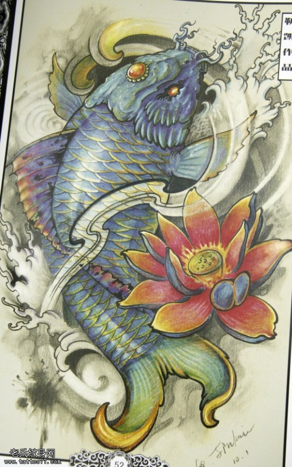 传统鲤鱼莲花纹身图案