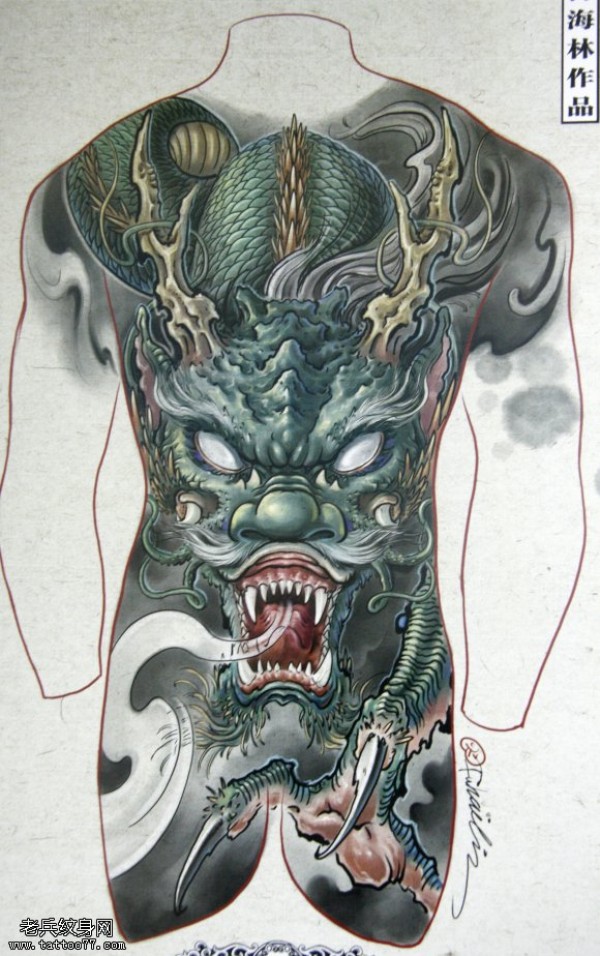 霸气的满背龙头纹身图案