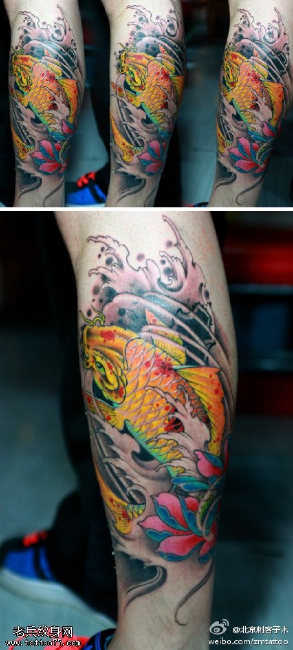 传统鲤鱼花小腿纹身_腿部纹身图案大全_纹身图吧