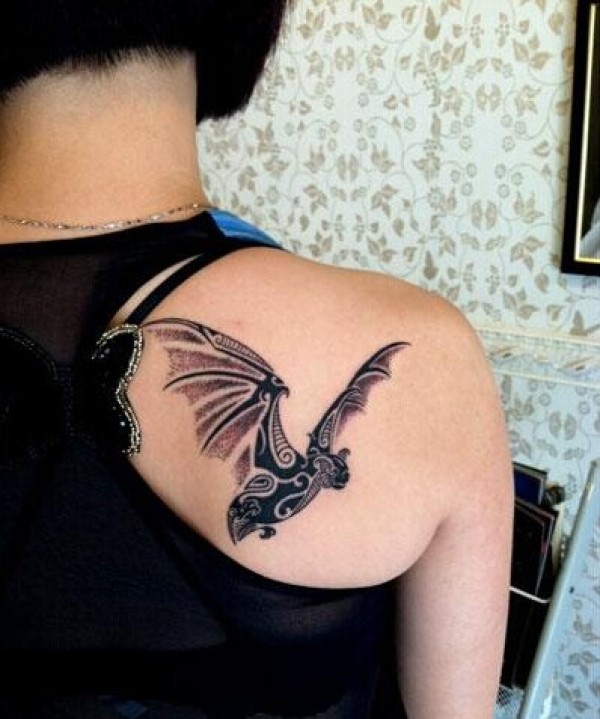 女生肩花纹身_15张女性双肩对称的肩花纹身图案作品图片