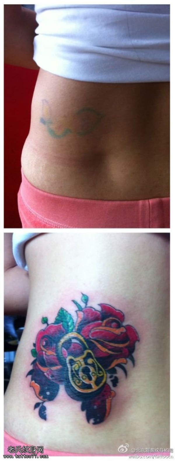 分享一款腰部时尚性感的蝶恋花纹身图案_腰部纹身图案大全_纹身图吧