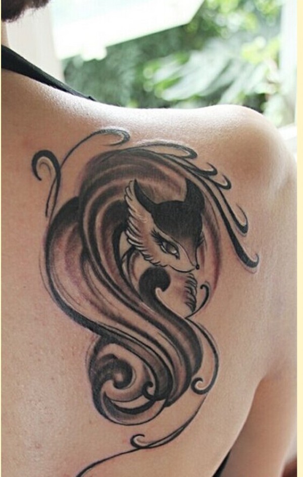 侧肩漂亮小狐狸纹身图案分享图片