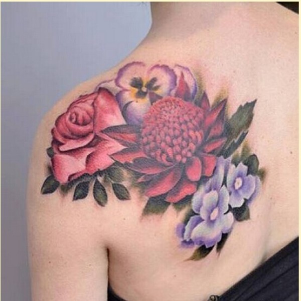 后肩唯美花藤英文图案图片_植物纹身图案大全_纹身图吧
